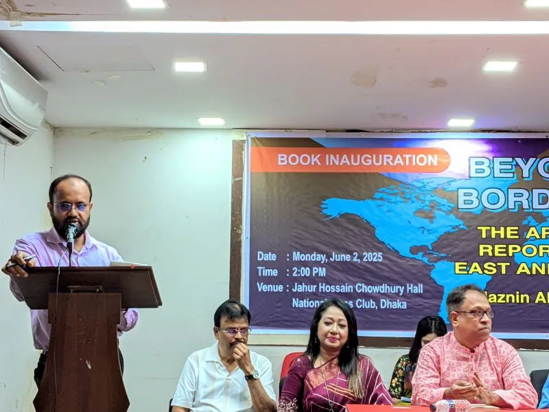 Prominent NTV news presenter Naznin Akter Banu has launched her journalism-focused book titled Beyond Borders ‘‘The Art of Reporting East and West.” The unveiling ceremony took place on Monday afternoon at the Zahur Hossain Chowdhury Hall of the National Press Club in Dhaka.